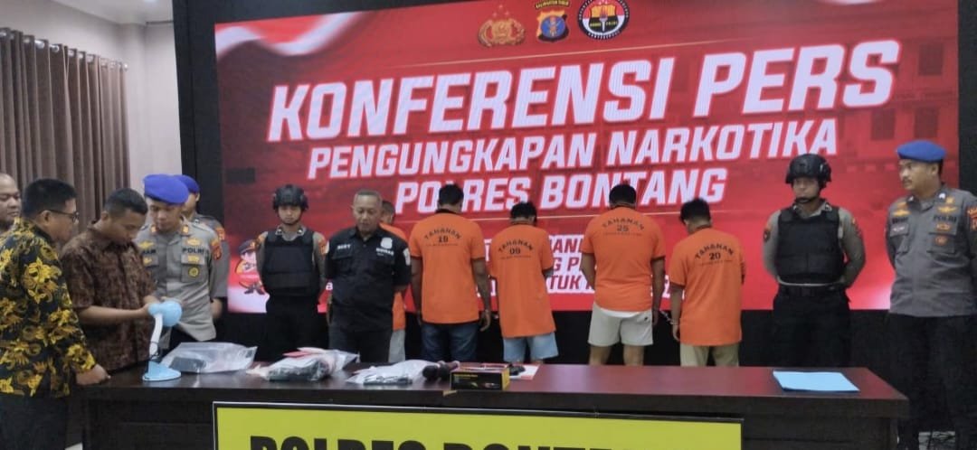 BONTANG – Tim gabungan Polres Bontang menangkap lima tersangka diduga peredaran narkoba jenis sabu.