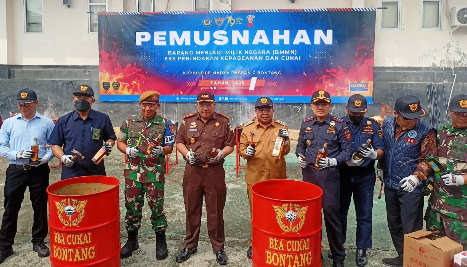 Barang yang dimusnahkan terdiri dari rokok dan minuman keras ilegal. Totalnya mencapai 93.720 batang rokok dan 148,18 liter miras.