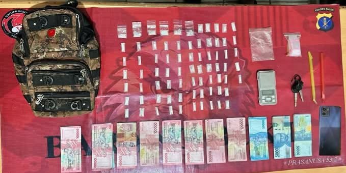 Juga diamankan timbangan digital, alat takar, uang tunai, dan motor.