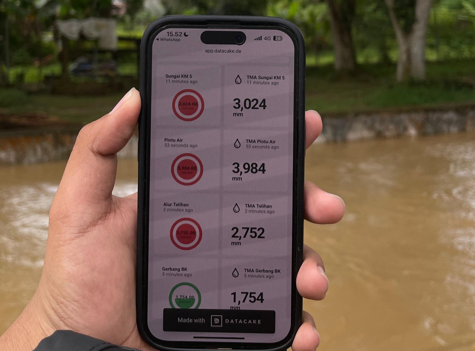 Warga bisa melihat data ketinggian air sungai (TMA) secara langsung melalui sistem pemantauan berbasis real-time.