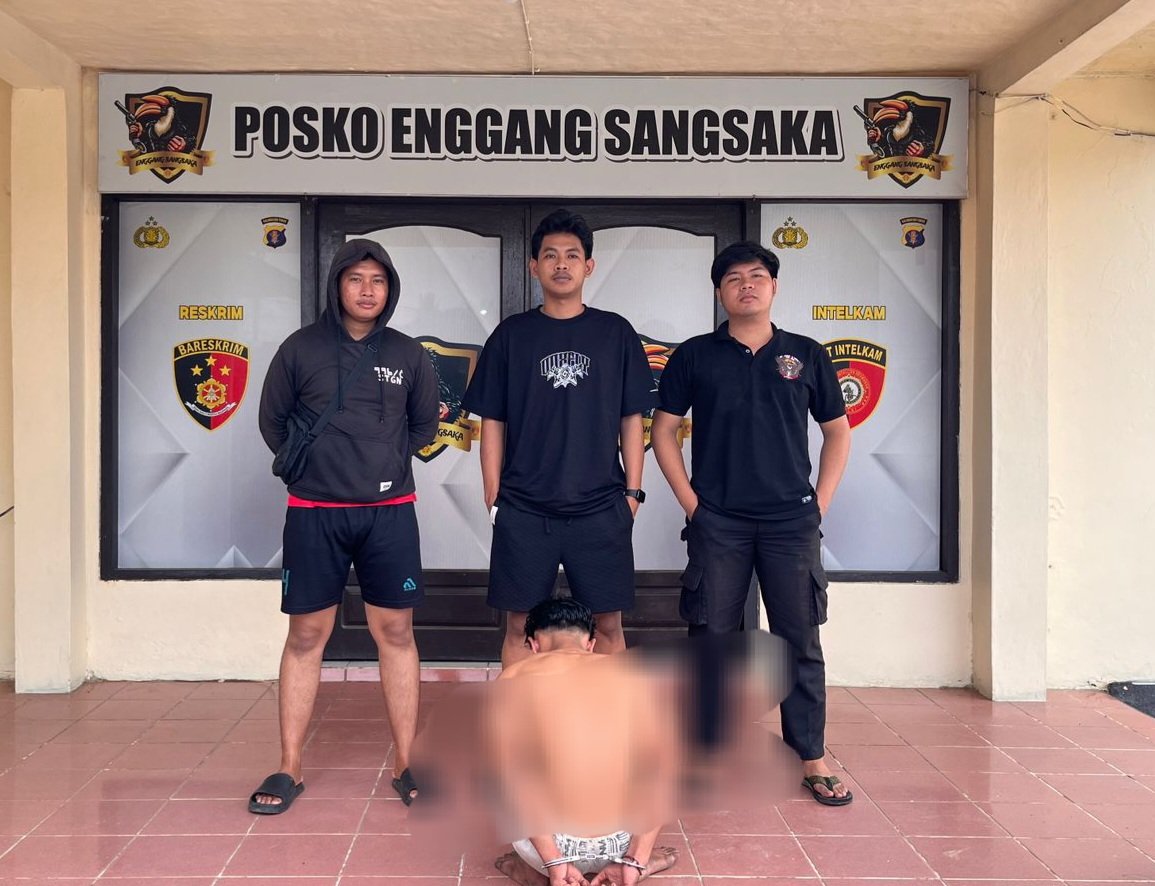 Penangkapan dilakukan oleh Tim Enggang Sangsaka Unit Reserse Kriminal Polsek Sangkulirang pada Sabtu (13/12) sekitar pukul 06.10 Wita di kawasan Jalan R.A Kartini, RT 005, Desa Benua Baru Ulu.