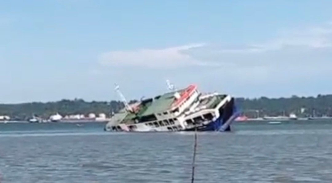 Proses evakuasi dilakukan dengan bantuan kapal feri lain yang kebetulan melintas di lokasi kejadian.