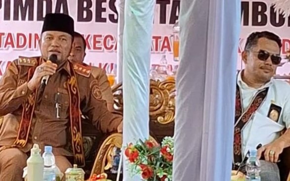 Gubernur Kalimatan Timur (Kaltim) Rudy Mas'ud dan Ketua DPRD Kaltim Hasanuddin Mas'ud saat sambutan di lokasi mediasi Kampung Sidrap antara Kutim dan Bontang. (Dok:Cuitan)