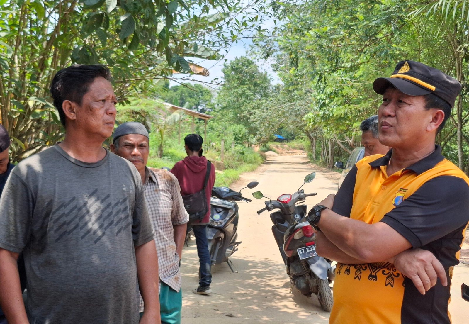 Kapolsek Bontang Barat, Iptu Hadi Esmoyo, mendatangi warga soal kasus dugaan tambang ilegal. (Dok:Cuitan)